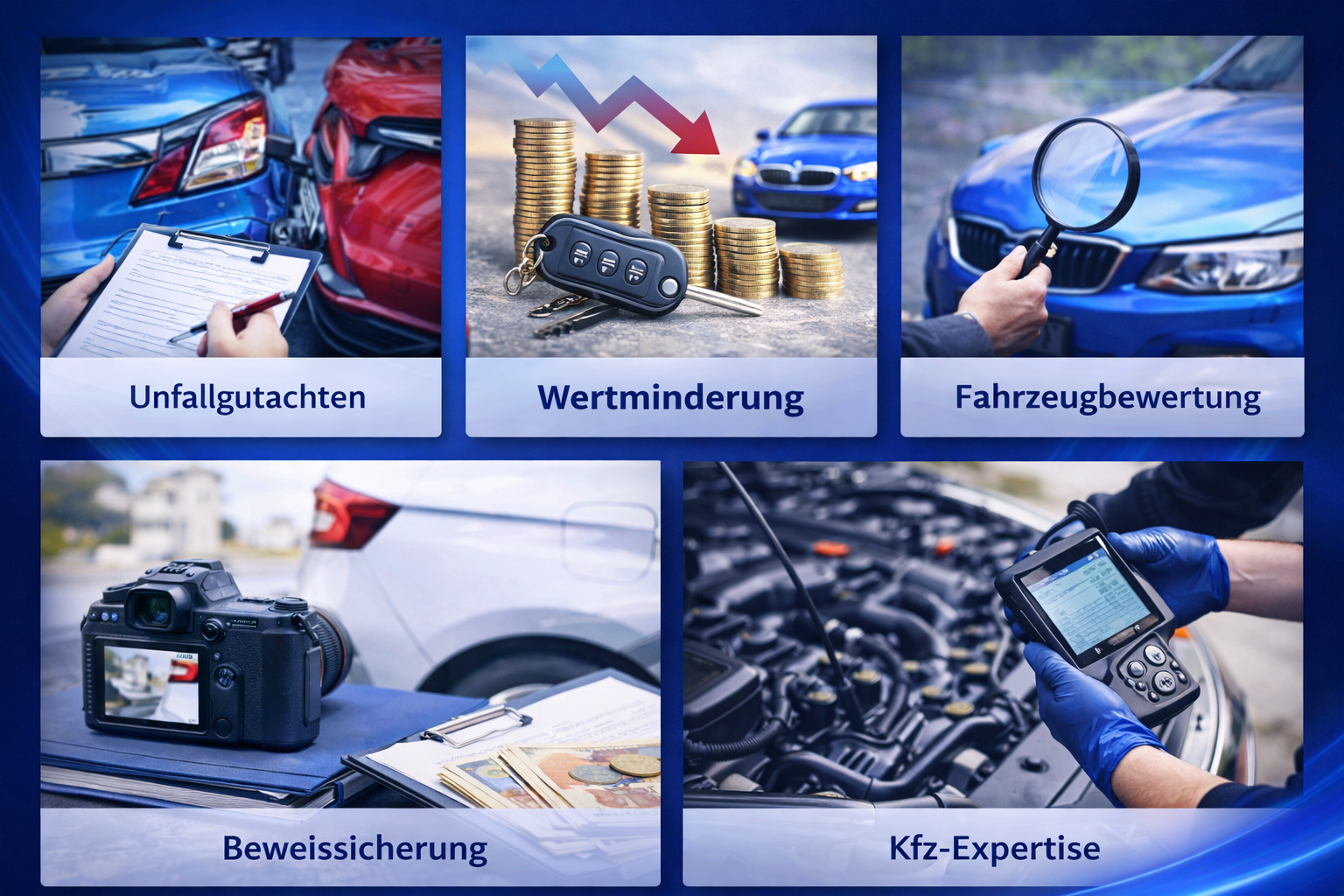 ist spezialisiert auf unabhängige Kfz-Schaden- und Wertgutachten. Unsere Bewertungen basieren auf fachlicher Kompetenz, technischer Analyse und aktuellen Marktwerten.